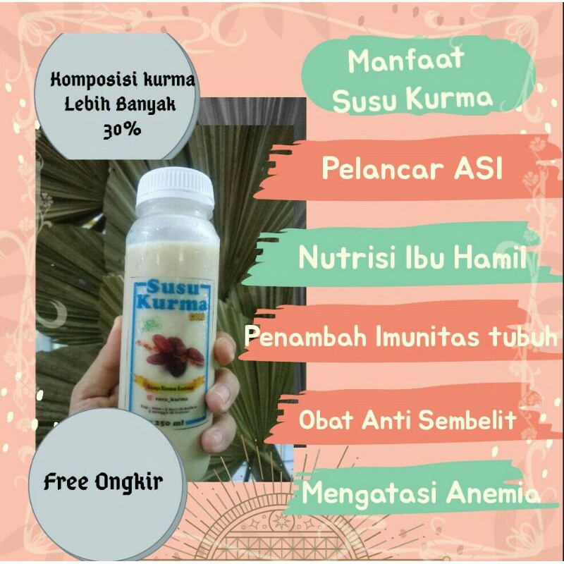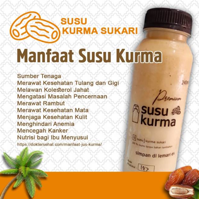 Susu kurma dibuat dari kurma pilihan & susu murni higienis, tanpa tambahan gula & bahan pengawet mengandung bermacam kebaikan untuk tubuh.